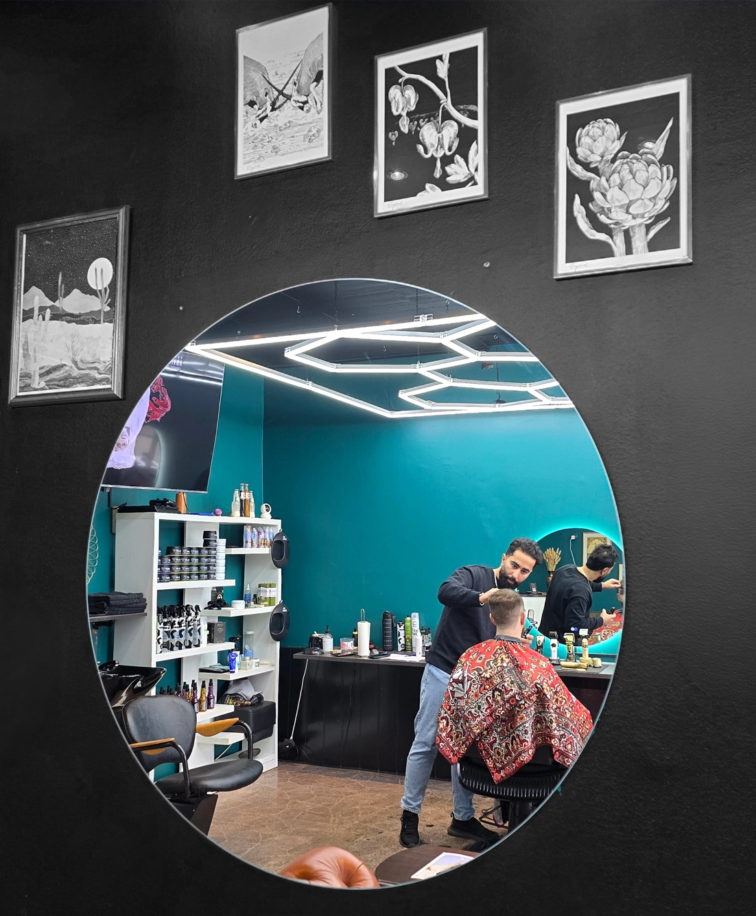 Privat barber lounge-upplevelse med klippning, avslappnad atmosfär och full takeover av salongen — erbjuds av ett musik- & barberkoncept (pris vid förfrågan).